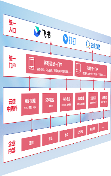 对协作平台提供支持服务,,支持企业应用与协作平台对接,,,,包含组织同步、、、、消息集成、、、待办集成等。。支持目前主流的协作平台:钉钉、、、、企微和飞书。。
